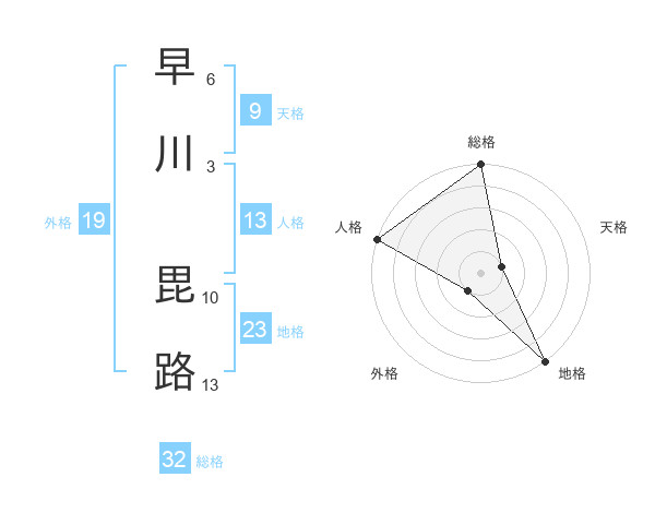 早川 毘路さんの総格は32画の5点!