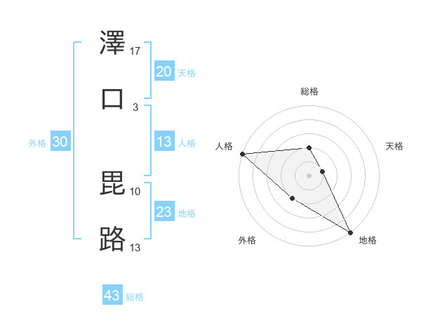 澤口 毘路さんの総格は43画の2点!