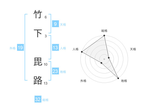竹下 毘路さんを姓名の画数から五運を鑑定