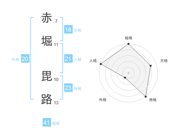 赤堀 毘路さんを姓名の画数から五運を鑑定