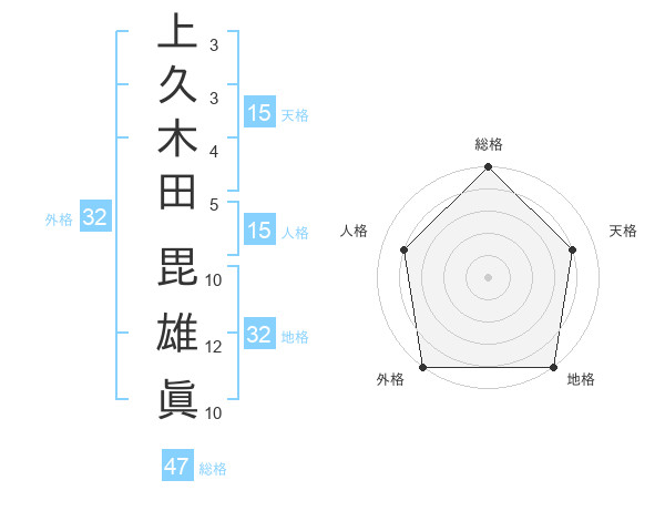 上久木田 毘雄眞さんを姓名の画数から五運を鑑定