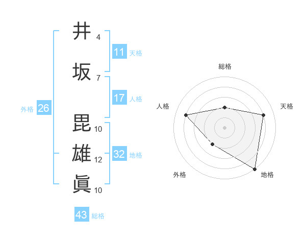 井坂 毘雄眞さんの総格は43画の2点!