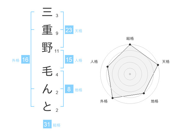 三重野 毛んとさんの外格は16画の5点!