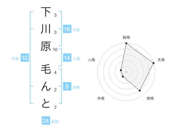 下川原 毛んとさんを姓名の画数から五運を鑑定