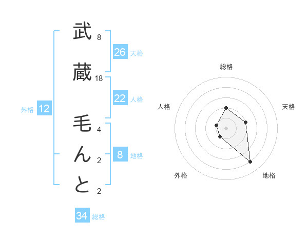 武蔵 毛んとさんを姓名の画数から五運を鑑定