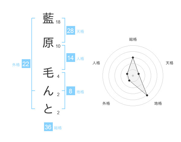 藍原 毛んとさんの地格は8画の4点!