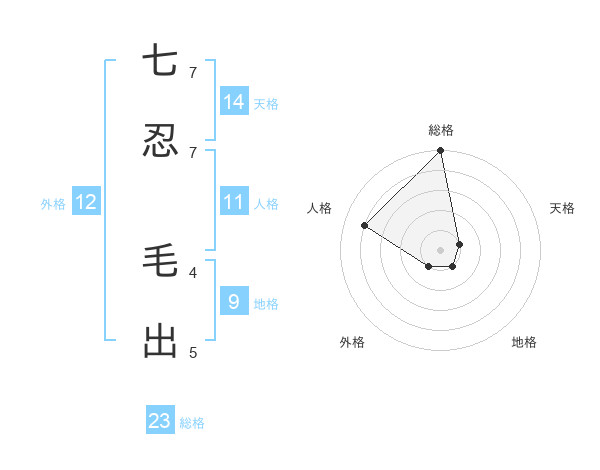 七忍 毛出さんの総格は23画の5点!