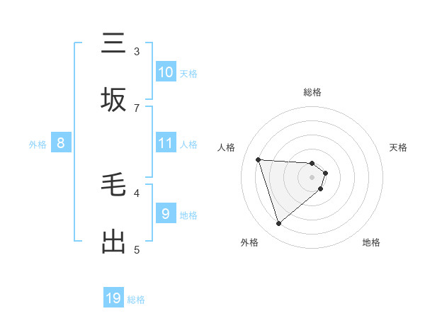 三坂 毛出さんの外格は8画の4点!