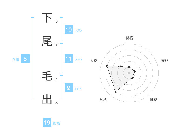 下尾 毛出さんを姓名の画数から五運を鑑定