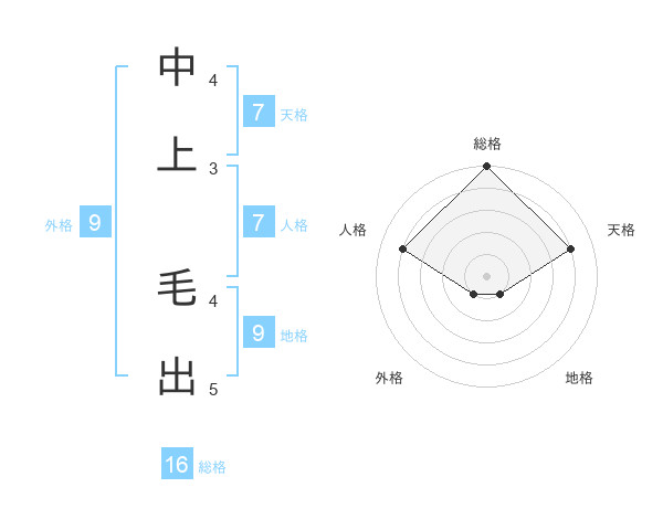 中上 毛出さんの総格は16画の5点!
