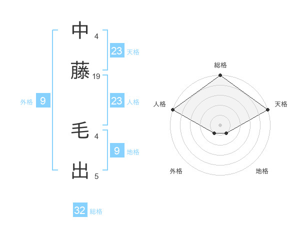 中藤 毛出さんを姓名の画数から五運を鑑定