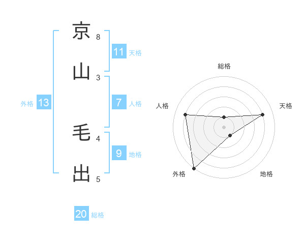 京山 毛出さんの総格は20画の1点!
