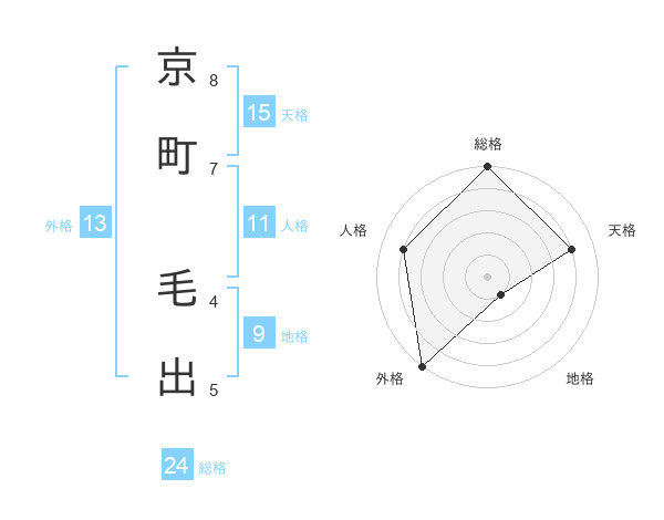 京町 毛出さんの総格は24画の5点!