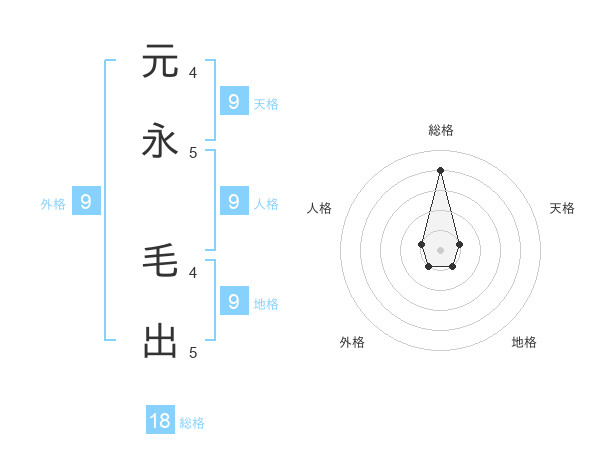 元永 毛出さんの総格は18画の4点!