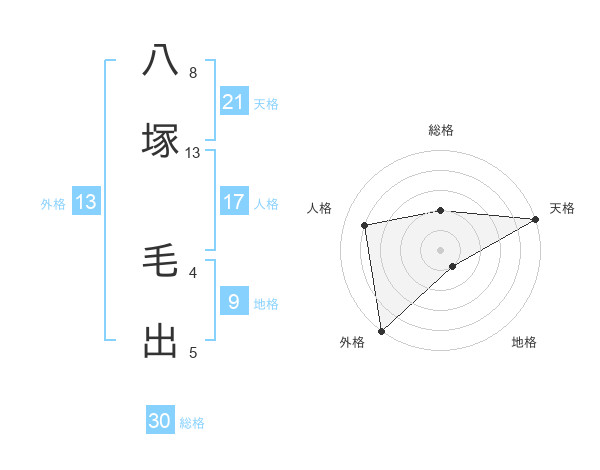八塚 毛出さんの外格は13画の5点!