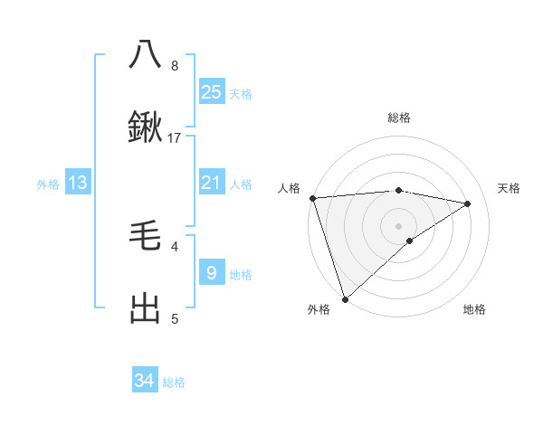 八鍬 毛出さんの外格は13画の5点!