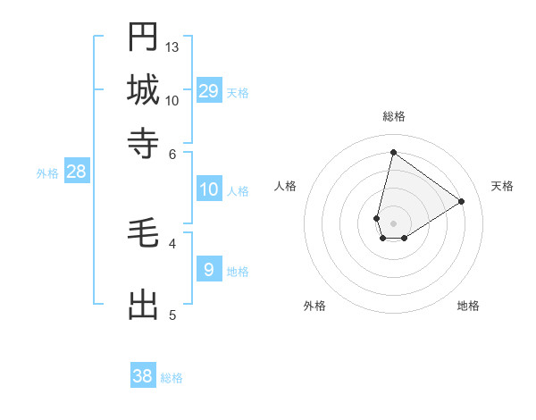 円城寺 毛出さんの総格は38画の4点!