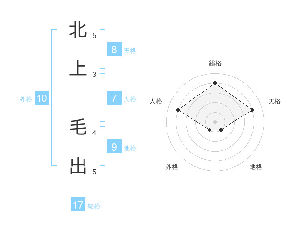 北上 毛出さんの総格は17画の4点!