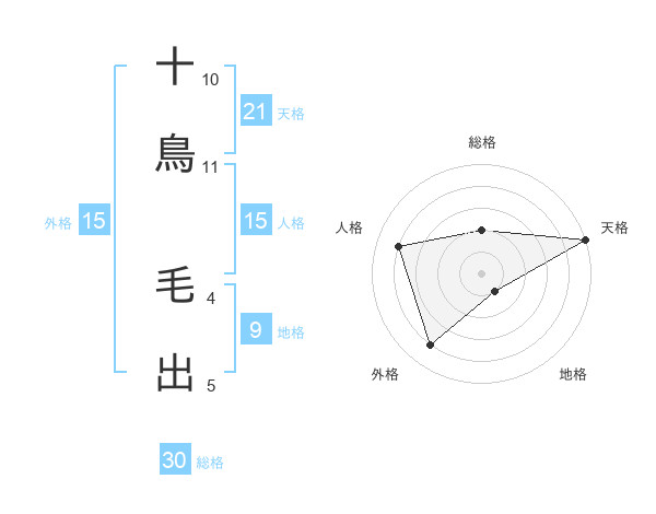 十鳥 毛出さんを姓名の画数から五運を鑑定
