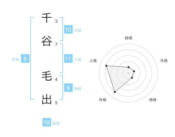 千谷 毛出さんを姓名の画数から五運を鑑定