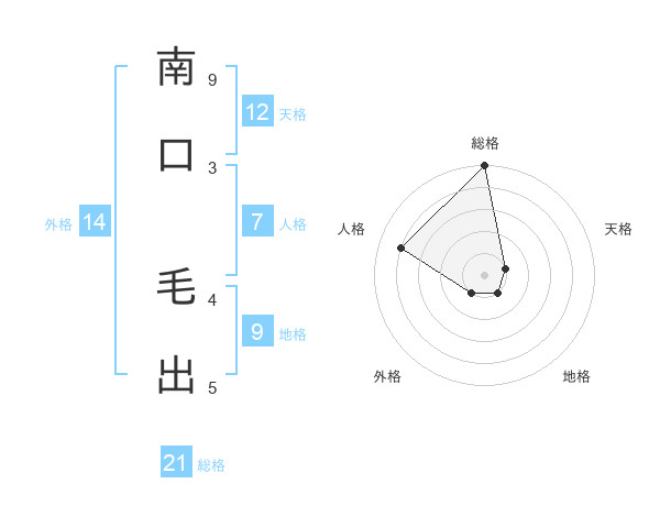 南口 毛出さんの総格は21画の5点!