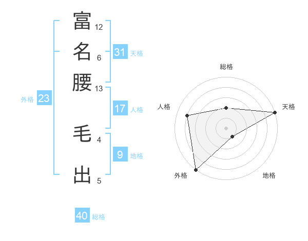 富名腰 毛出さんの外格は23画の5点!