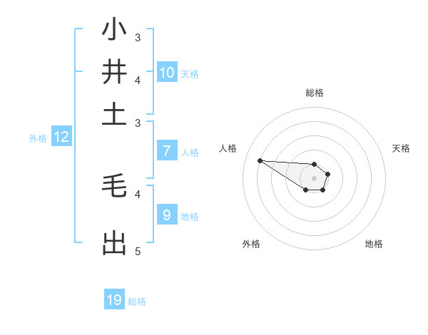 小井土 毛出さんを姓名の画数から五運を鑑定