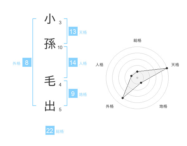 小孫 毛出さんの天格は13画の5点!