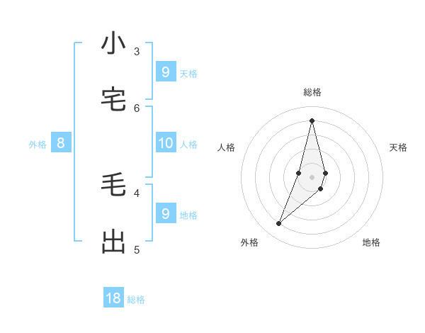 小宅 毛出さんを姓名の画数から五運を鑑定