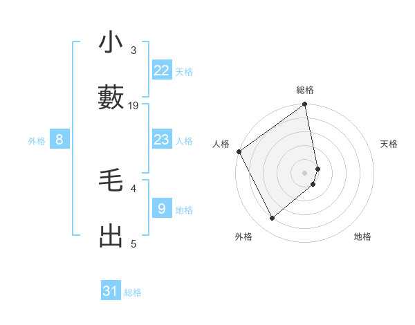小藪 毛出さんの外格は8画の4点!