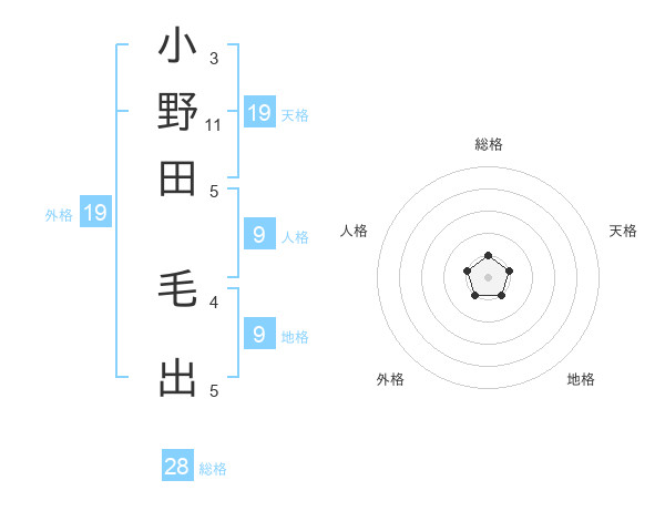 小野田 毛出さんを姓名の画数から五運を鑑定