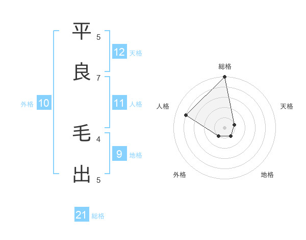 平良 毛出さんの総格は21画の5点!