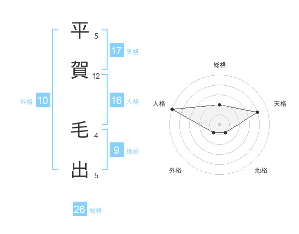 平賀 毛出さんを姓名の画数から五運を鑑定