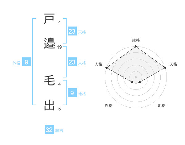 戸邉 毛出さんを姓名の画数から五運を鑑定