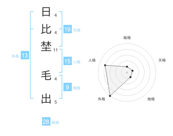 日比埜 毛出さんを姓名の画数から五運を鑑定