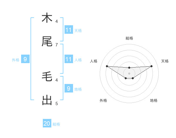木尾 毛出さんを姓名の画数から五運を鑑定