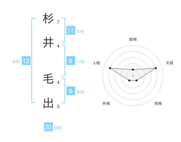 杉井 毛出さんの総格は20画の1点!