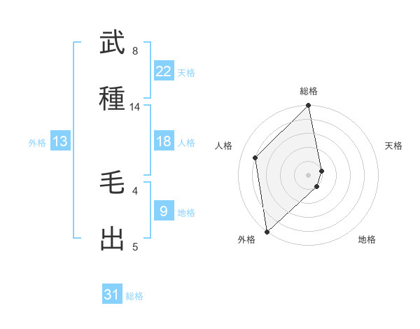 武種 毛出さんの総格は31画の5点!