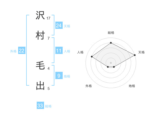 沢村 毛出さんを姓名の画数から五運を鑑定