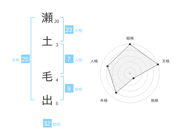 瀬土 毛出さんを姓名の画数から五運を鑑定