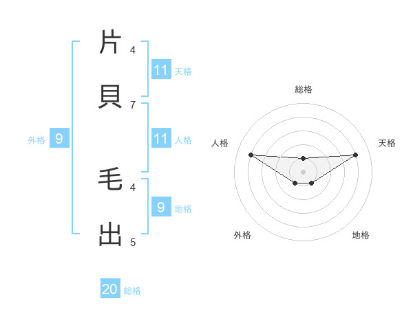 片貝 毛出さんを姓名の画数から五運を鑑定