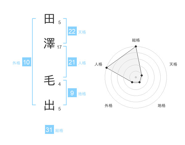 田澤 毛出さんの総格は31画の5点!