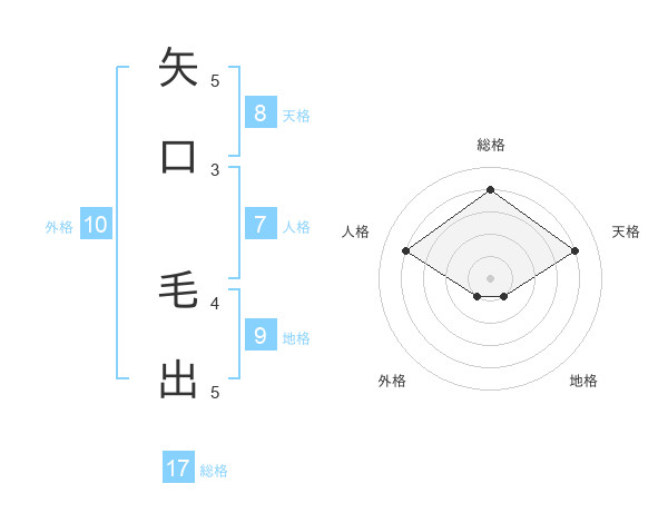 矢口 毛出さんを姓名の画数から五運を鑑定