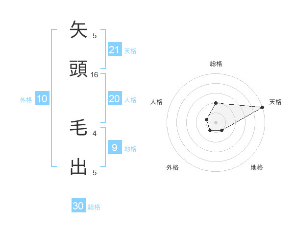 矢頭 毛出さんの天格は21画の5点!