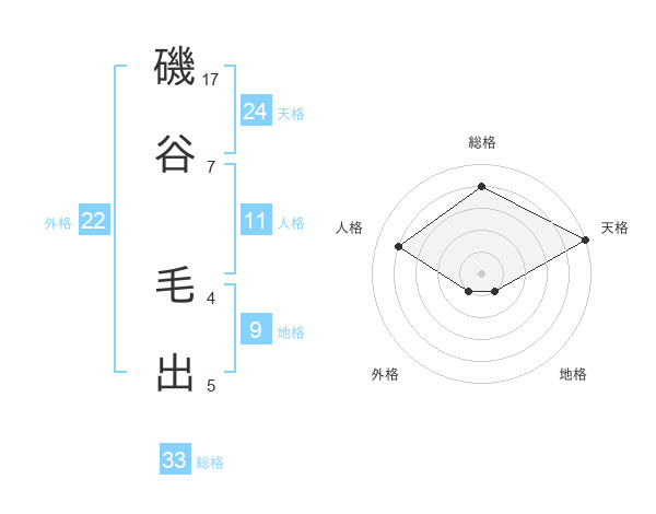 磯谷 毛出さんの総格は33画の4点!