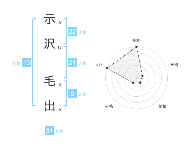 示沢 毛出さんを姓名の画数から五運を鑑定