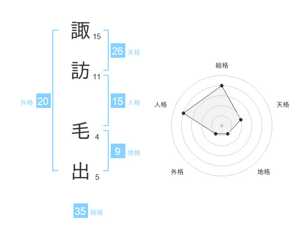 諏訪 毛出さんの総格は35画の4点!
