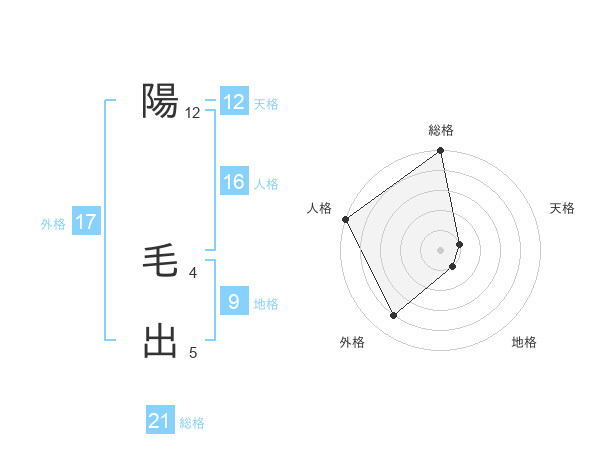陽 毛出さんの外格は17画の4点!