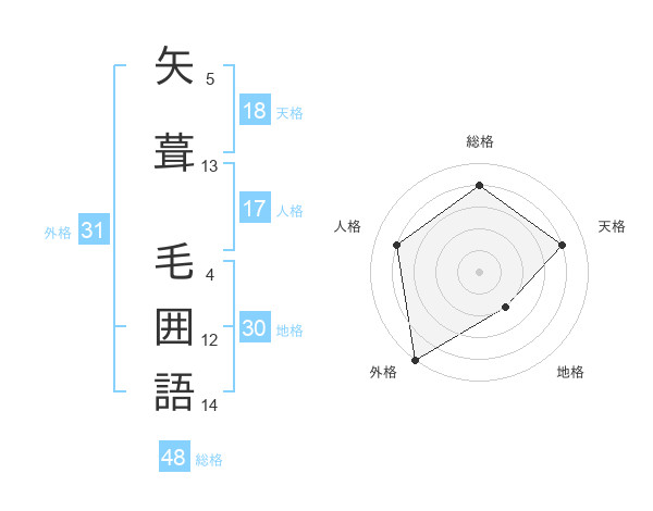 矢葺 毛囲語さんを姓名の画数から五運を鑑定