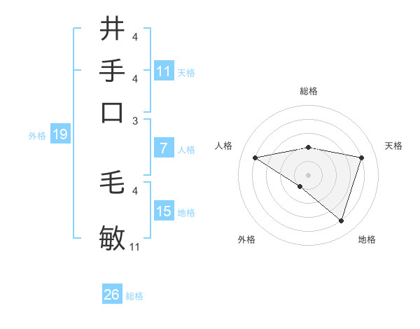 井手口 毛敏さんを姓名の画数から五運を鑑定